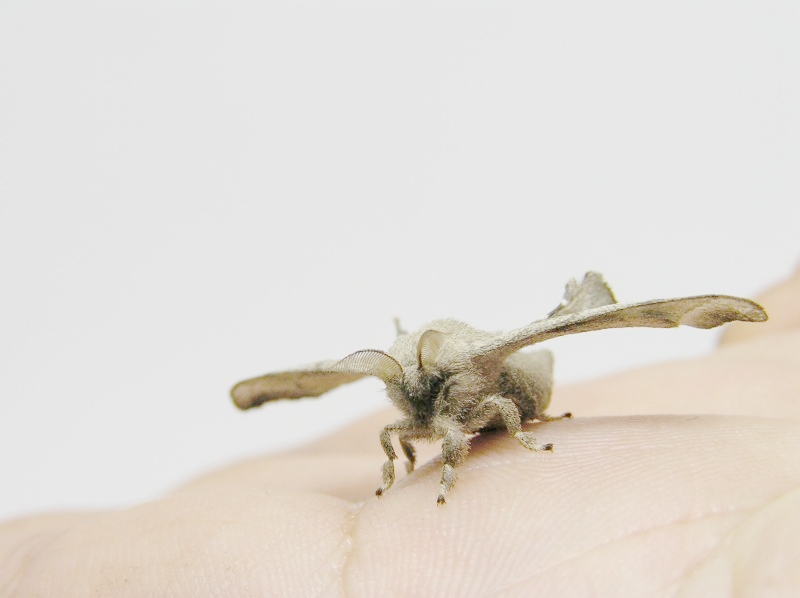 人の気配を感じるとじっと動かなくなります。クワコもカイコと同じとてもおとなしい昆虫のようです。